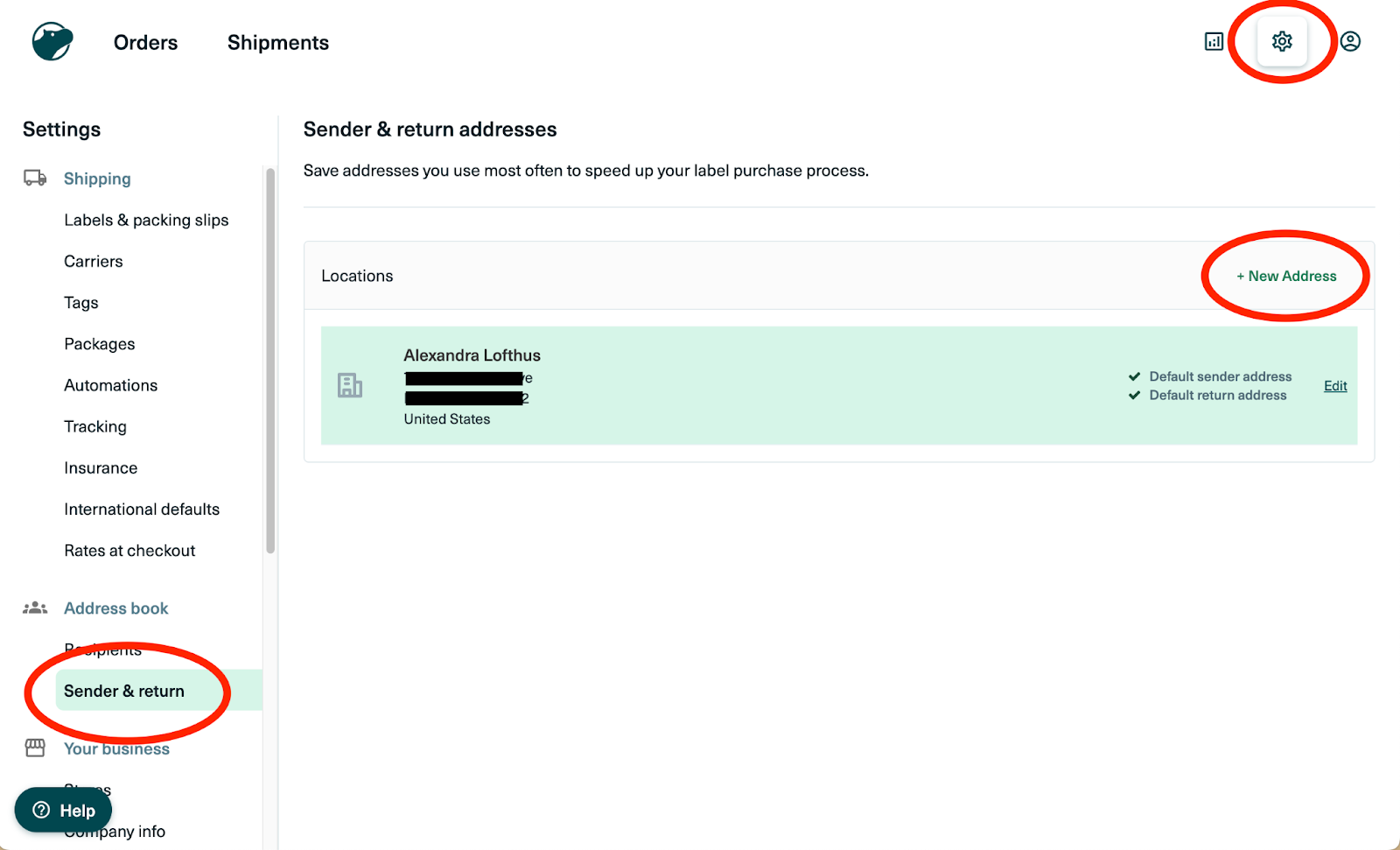 To change the name and/or address that appears on labels, visit the Settings section of goshippo.com, select Sender & Return, and add or edit addresses there.