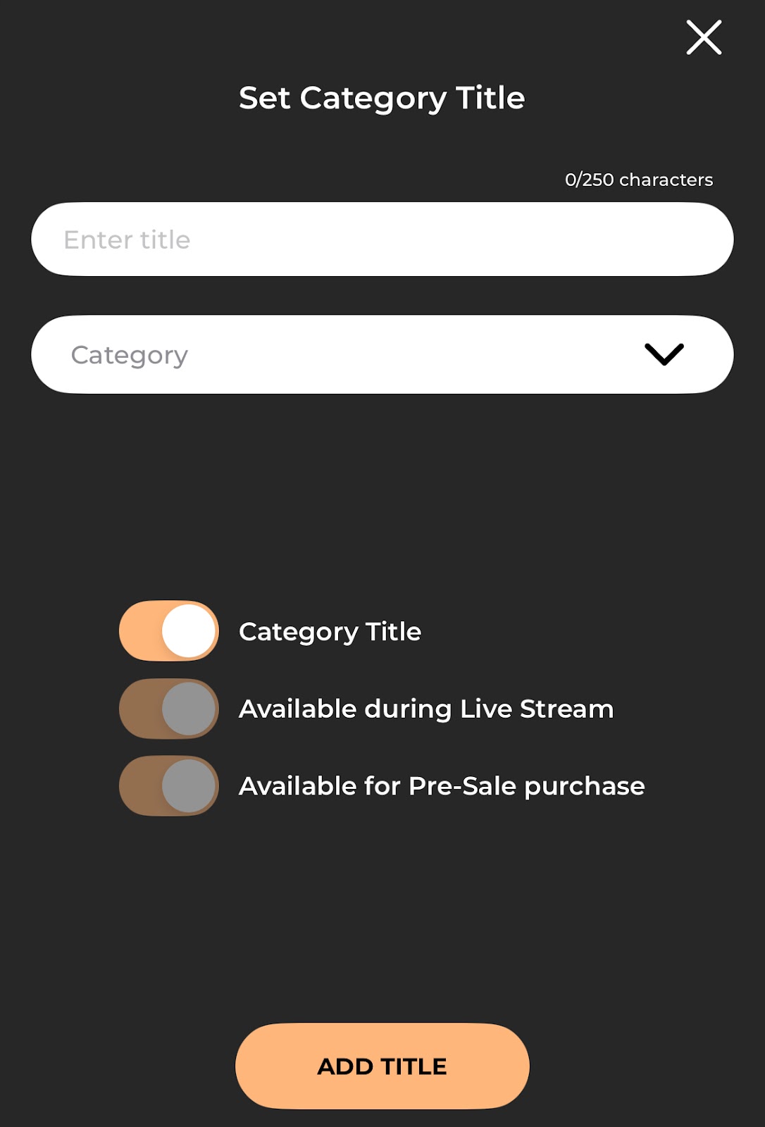 Once in the item addition screen, tap the "Category Title" slider. This will allow you to add a category to your inventory.